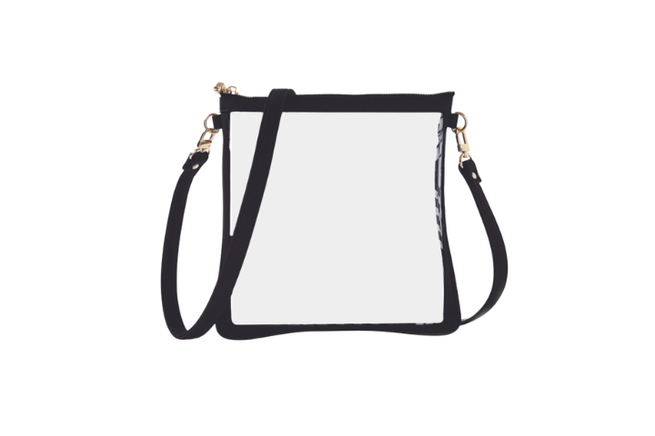 Size #6 Double Nudie Black is the perfect versatile bag that transitions from tote organizer to crossbody in seconds. This security approved for events bag with clear window comes with a 48" removable crossbody strap, allowing you to grab it from your tote, add the strap, and wear crossbody style to suit your needs.